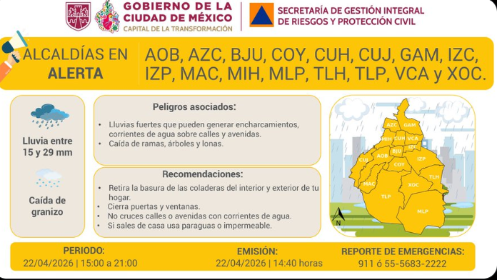 A través de su cuenta de X, la dependencia solicitó atender las recomendaciones, mantenerse informado y extremar precauciones.