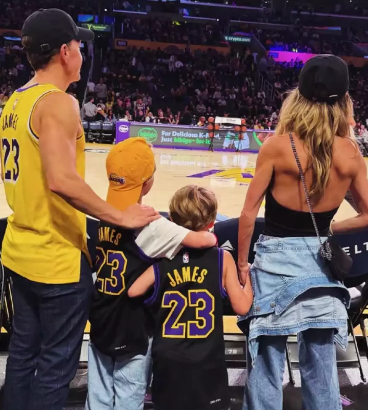 Horas más tarde, la cantante compartió otra imagen en la que aparece junto a su esposo, Manuel Velasco, y sus hijos. El político también lució un jersey de los Lakers, combinado con un pantalón azul marino y una gorra.