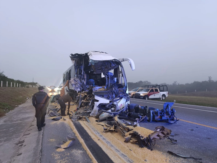 El autobús transportaba a 36 pasajeros, entre ellos menores de edad, quienes se dirigían a Poza Rica, Veracruz, procedentes de Nuevo Laredo, cuando se impactó contra la parte trasera del tráiler, provocando que varias personas quedaran prensadas al interior de la unidad.