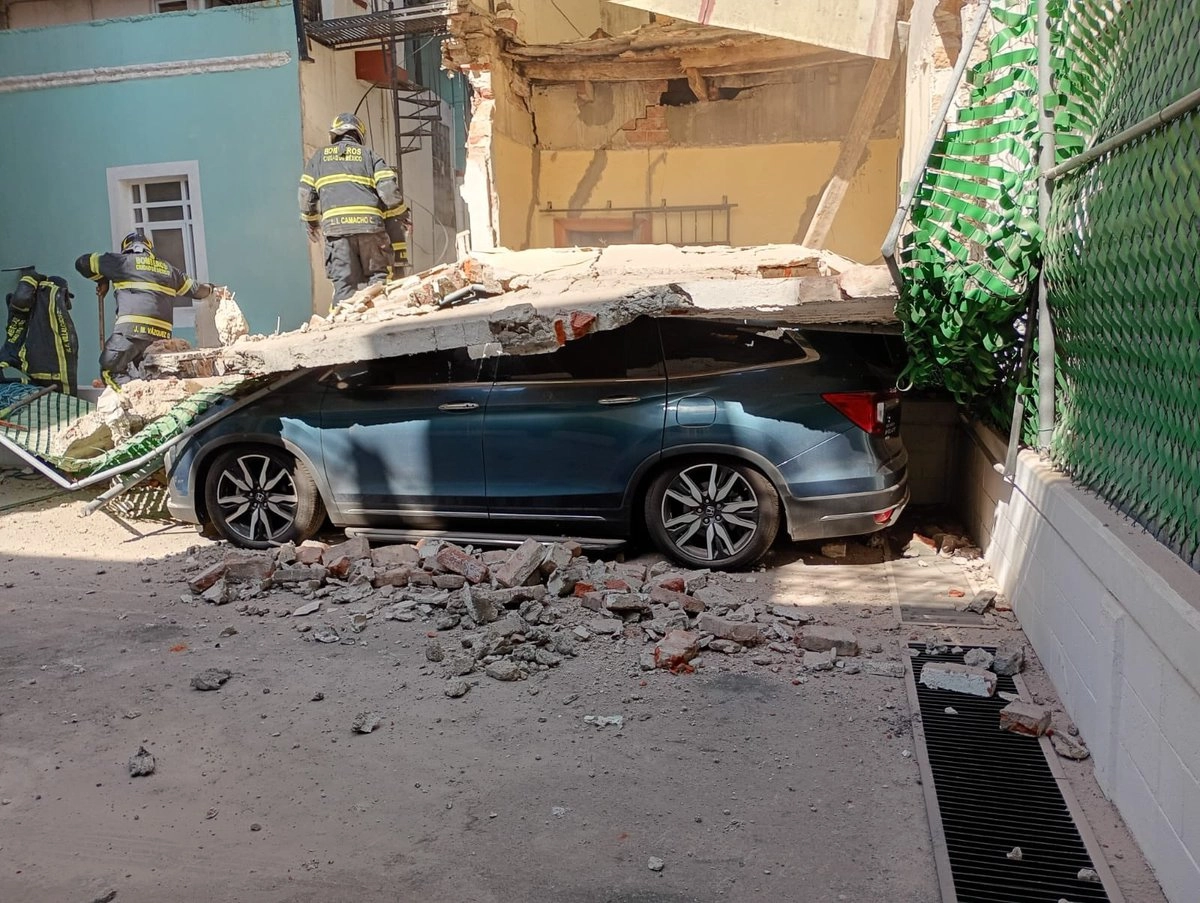 El director general del Heroico Cuerpo se Bomberos, Juan Manuel Pérez Cova informó en sus redes sociales que derivado del desplome un vehículo resultó afectado.