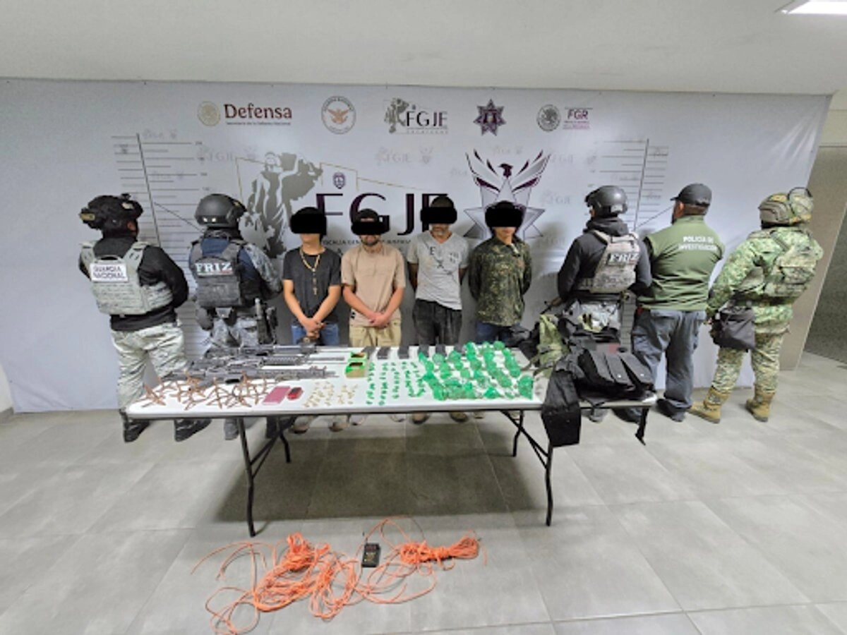 Como resultado de la acción conjunta, fueron arrestados Alberto N., de 47 años; Claudio N., de 18 años; Juan Carrera N., de 21 años y Flavio Alberto N., de 38 años, este último identificado como el jefe de plaza de una célula criminal que operaba en el municipio de Tabasco.