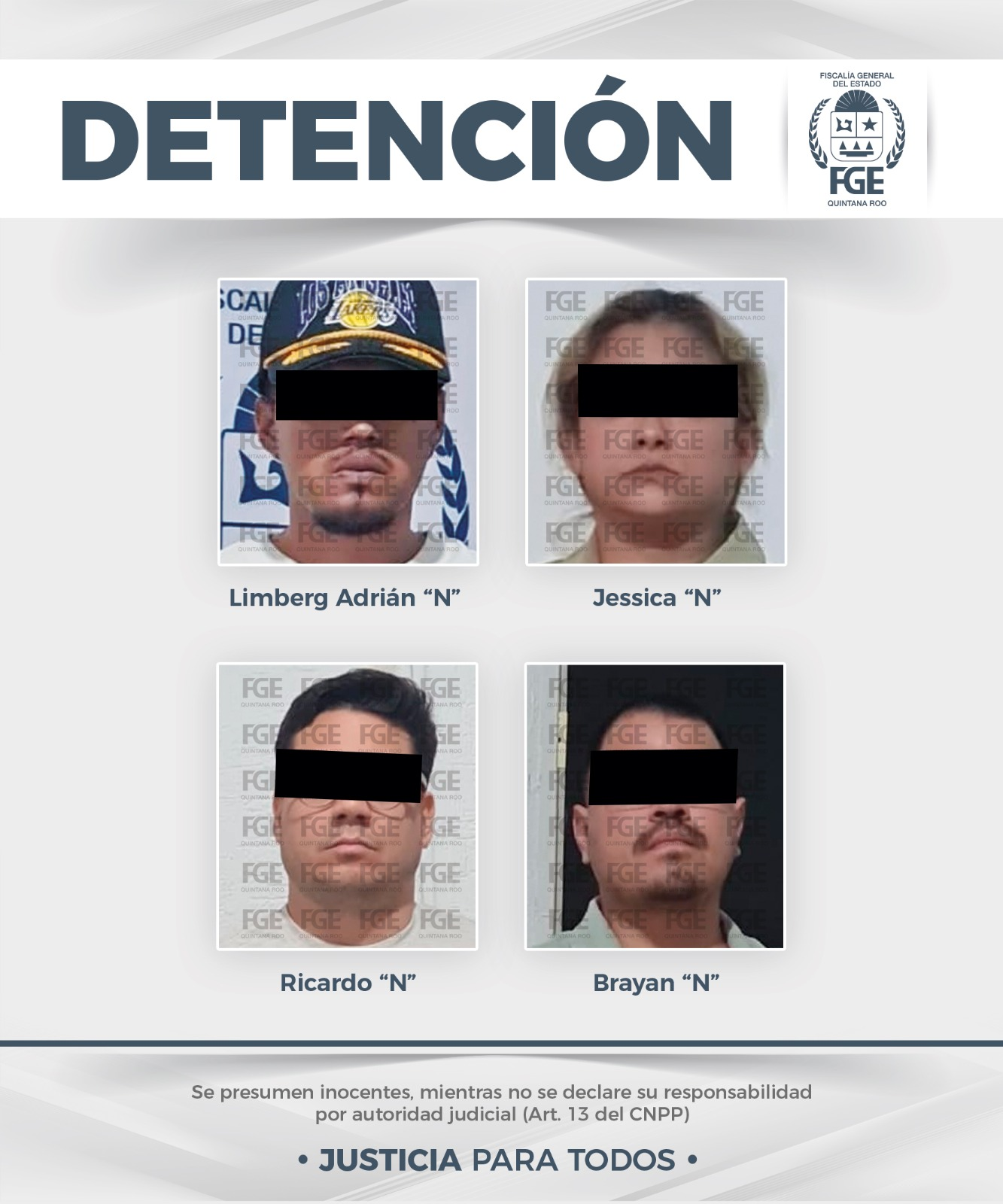 Tras reunir pruebas suficientes, la Fiscalía obtuvo la orden de cateo que permitió la detención de los cuatro sospechosos. Actualmente, los implicados se encuentran a disposición de la autoridad competente, que determinará su situación jurídica por su probable participación en el delito de fraude.