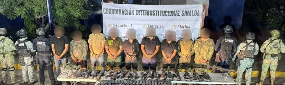 Mientras continuaban los reconocimientos, los cuerpos de seguridad detuvieron a nueve civiles armados, quienes portaban armas de alto poder, chalecos balísticos y equipo táctico. El aseguramiento incluyó: