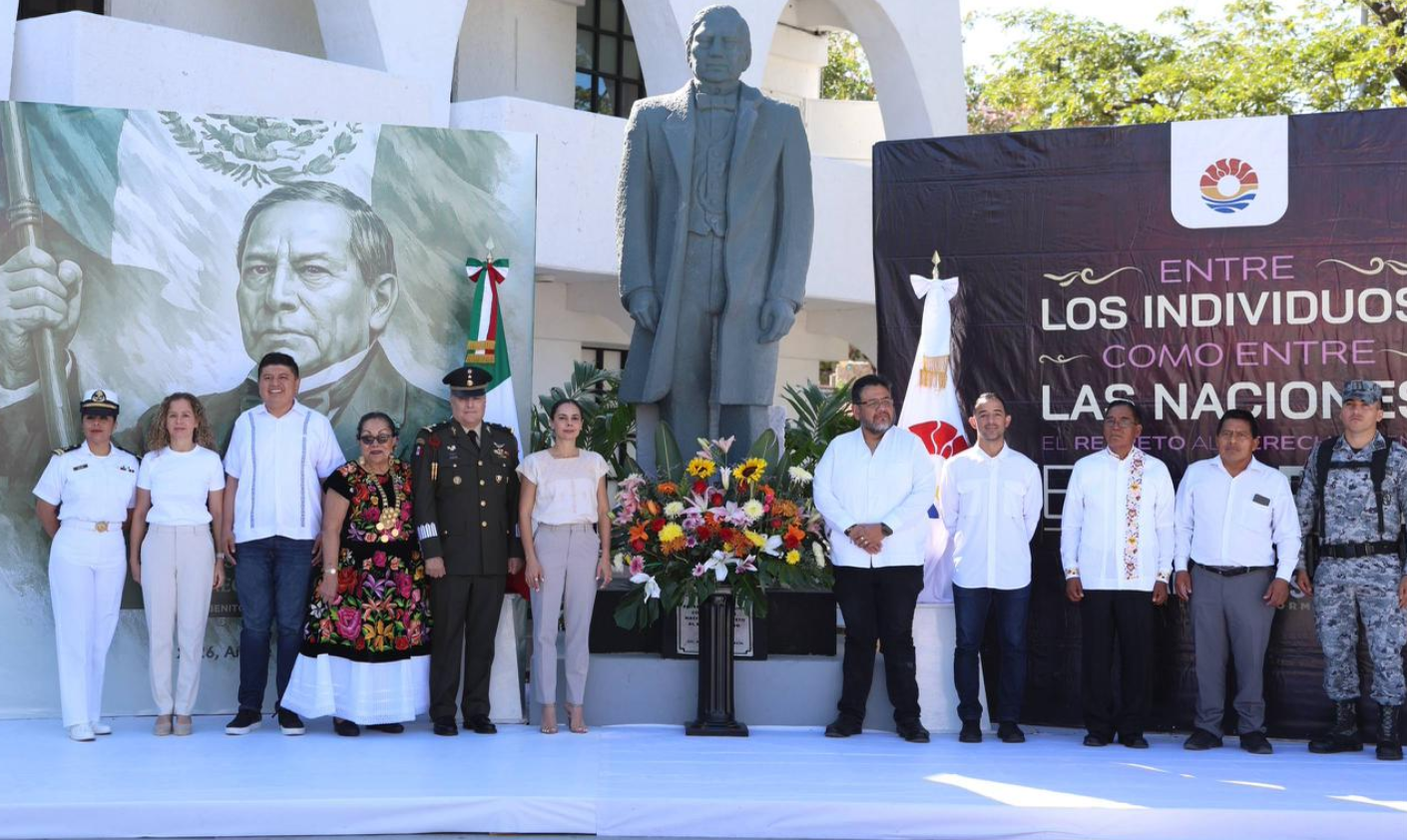Al frente de decenas de representantes oaxaqueños, tierra donde nació dicha figura, la Primera Autoridad Municipal recordó la frase célebre del prócer de la Patria: “Entre los individuos, como entre las naciones, el respeto al derecho ajeno es la paz”, destacando que este principio recuerda que México es y seguirá siendo una nación libre, soberana e independiente, un pueblo que ha sabido defender su dignidad y su autodeterminación.