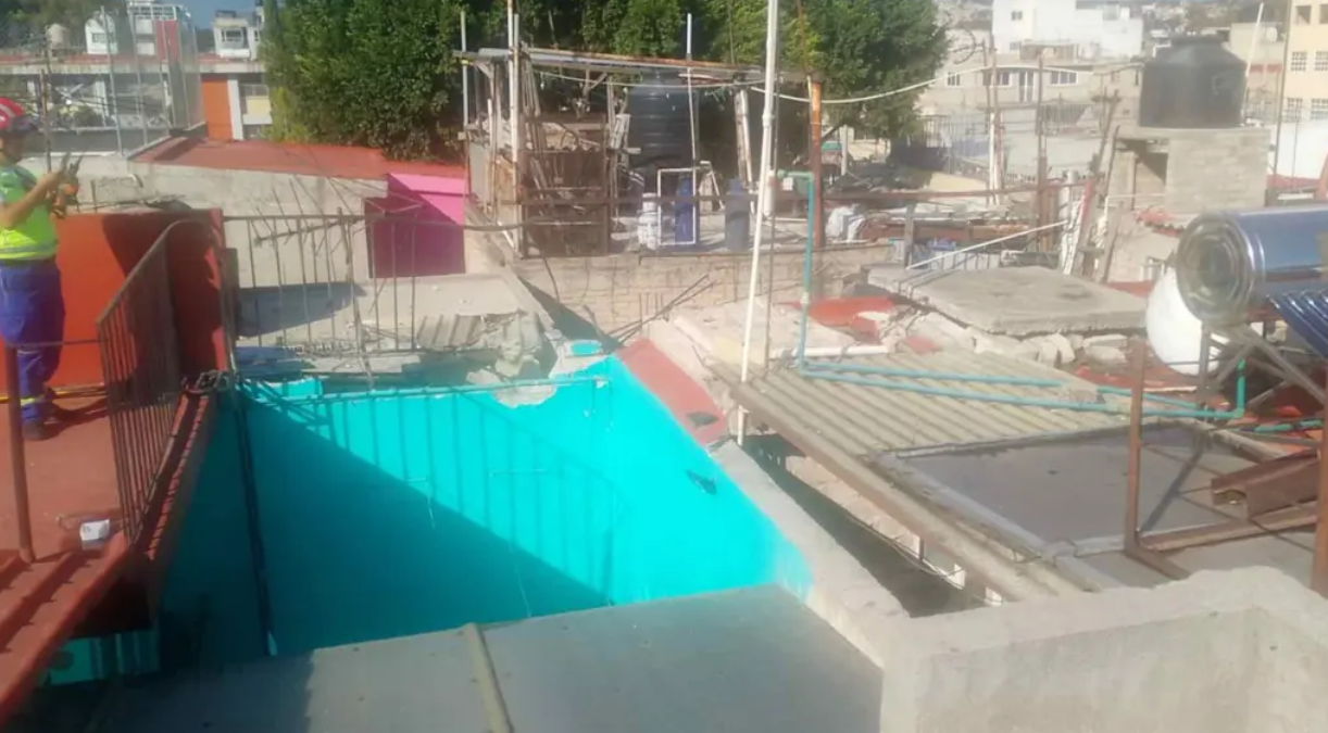 “Como daño colateral, se tiene afectación a láminas y pretiles de tres viviendas de la calle Morelos y al pretil en la azotea de la vivienda donde se ubicaba el tanque”, informó la Secretaría.