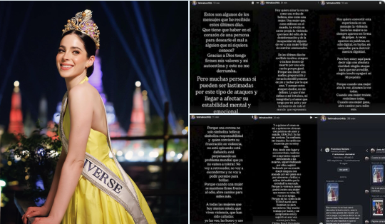A través de historias en su cuenta de Instagram, la reina de belleza compartió varias de las agresiones que ha recibido en días recientes, todas vinculadas a las dudas que han circulado sobre la transparencia del concurso. Uno de los mensajes expuestos en su publicación reflejó la violencia de estos ataques: “¡Espero que mueras mañana! ¡Tu y tu familia! ¡Fraude! ¡Qué vergüenza! ¡Espero que nunca encuentres felicidad y el karma te encuentre pronto! ¡Muere!”.