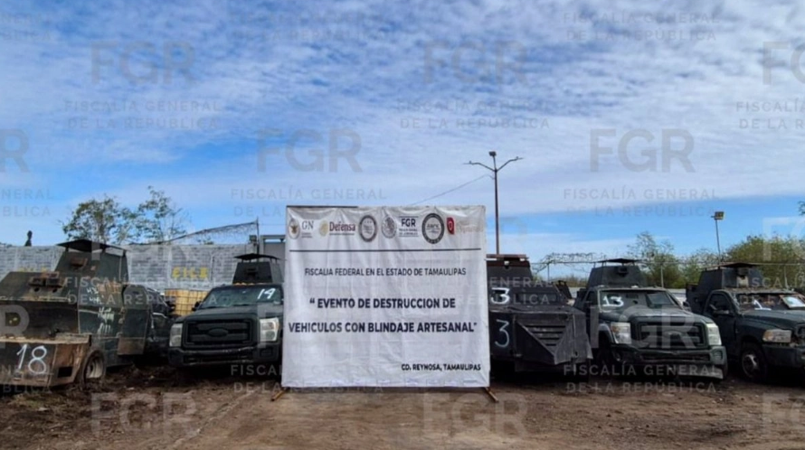 Ciudad de México.- En el marco del Programa “Destino de Bienes y Objetos del Delito”, la Fiscalía General de la República (FGR), destruyó 18 vehículos con blindaje artesanal de los denominados “monstruos”, que de acuerdo con las investigaciones, eran utilizados por las organizaciones criminales cártel del Golfo , así como cártel del Noreste y estaban relacionados con 16 carpetas de investigación.