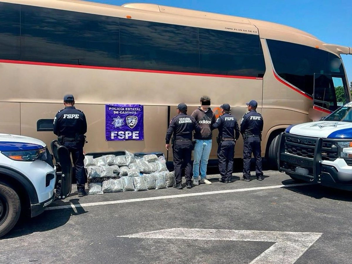 Relató que los oficiales revisaron dos maletas que olían a mariguana y en su interior encontraron 44 bolsas de plástico con el enervante. La Secretaría precisó que la droga asegurada equivale a 23 mil 170 dosis.