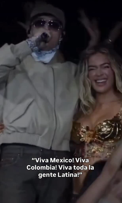 Peso Pluma subió al escenario para interpretar “QLONA” junto a Karol G. El mexicano, vestido con pañoleta, lentes oscuros y gorra, fue inmediatamente reconocido por el público. Al terminar la canción, Peso Pluma agradeció con emoción: “Muchísimas gracias, Karol. ¡Viva México, viva Colombia y viva toda la gente latina!”.