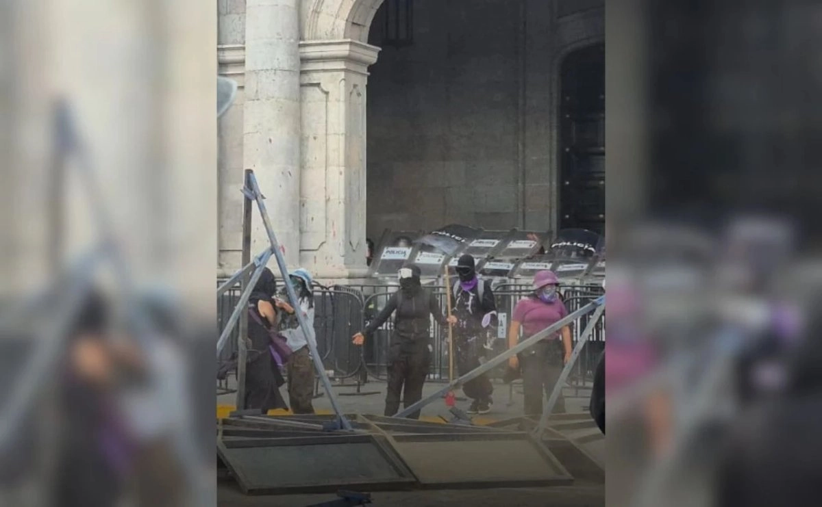 Sin embargo, los muros y las vallas metálicas de poco sirvieron pues una vez que los contingentes llegaron al primer cuadro, los derribaron y se realizaron pintas en estos edificios, principalmente en Palacio de Gobierno, que también estaba custodiado por elementos femeniles de la policía estatal.