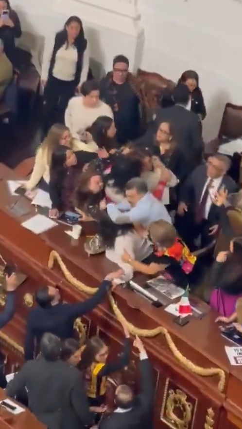 Se pudo observar a las legisladoras Daniela Álvarez, Yuriri Ayala, Claudia Pérez y Rosario Morales jalarse el cabello entre sí. Jesús Sesma, atónito de lo que ocurría, intentó separar a las diputadas.