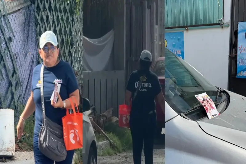 La COT Violeta Cetina fue sorprendida cuando repartía panfletos en colonias de Chetumal, con la fotografía del senador Eugenio Segura y la frase #EsConGino.