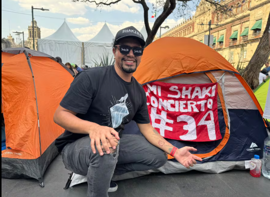 El concierto gratuito de Shakira ha causado una enorme emoción entre sus miles de fans, que cuentan las horas para su concierto de este domingo, por lo que hay quienes, desde días antes, como es el caso de Esaú López, quién se declara uno de los más grandes seguidores de la colombiana, pues la ha visto actuar en 33 ocasiones; mañana se cumple la 24.