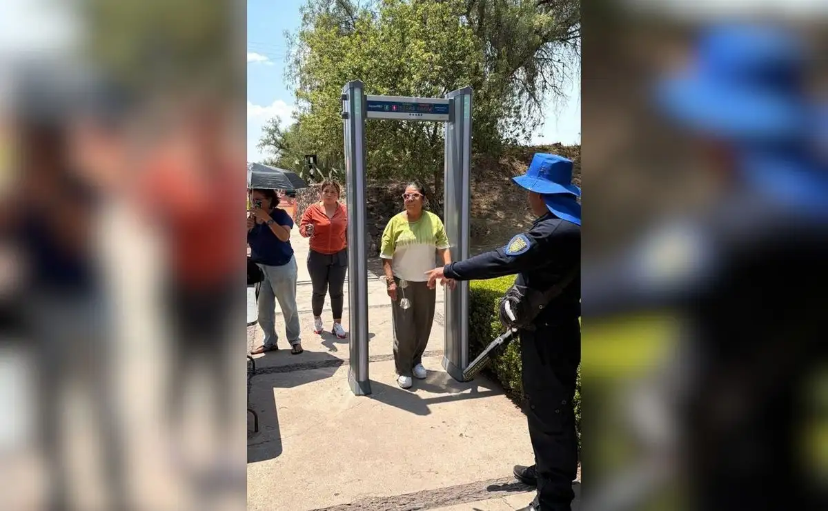 Teotihuacan, Estado de México.- Cinco arcos detectores de metales fueron instalados este domingo, uno en cada acceso a la Zona Arqueológica de Teotihuacan como medida de seguridad para evitar el paso de armas de fuego, armas blancas o cualquier otro tipo de metal; tras el tiroteo registrado el pasado lunes cuando un sujeto subió a la pirámide de La Luna para disparar a los turistas, resultando en una mujer canadiense muerta y siete personas más heridas por armas de fuego, además del suicidio del agresor.