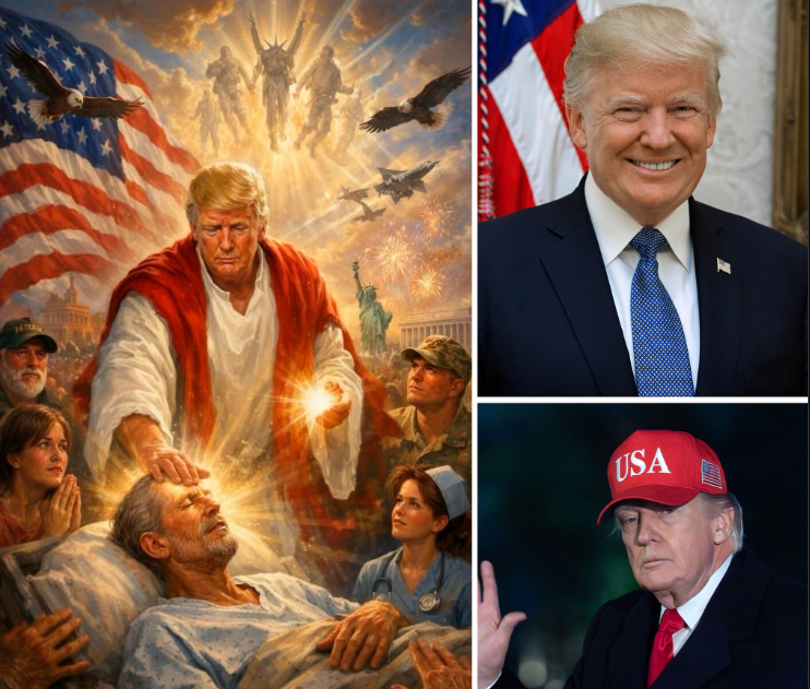 El 12 de abril, Trump publicó en Truth Social una imagen generada con IA en la que aparece vestido con una túnica blanca y roja, colocando una mano sobre la frente de un hombre enfermo, en una escena que remite a representaciones religiosas de sanación. En la imagen también aparecen una mujer rezando, un soldado y una enfermera observándolo , mientras al fondo se ven una bandera de Estados Unidos, fuegos artificiales, águilas y aviones militares.