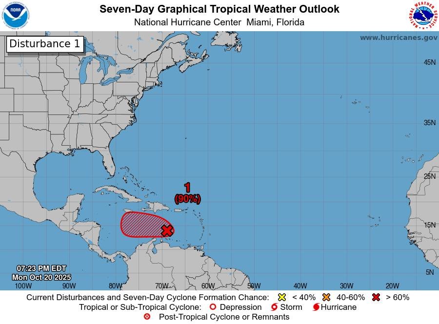 Vigilancia en el caribe por zona de baja presión con 90% de probabilidad para desarrollo ciclónico